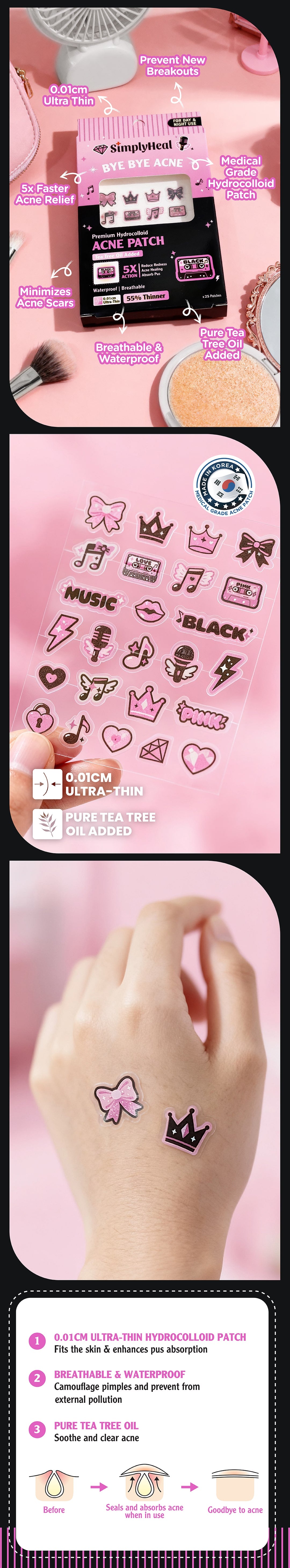 SimplyHeal Black VS Pink Day & Night Premium Hydrocolloid Acne Patch 25s
