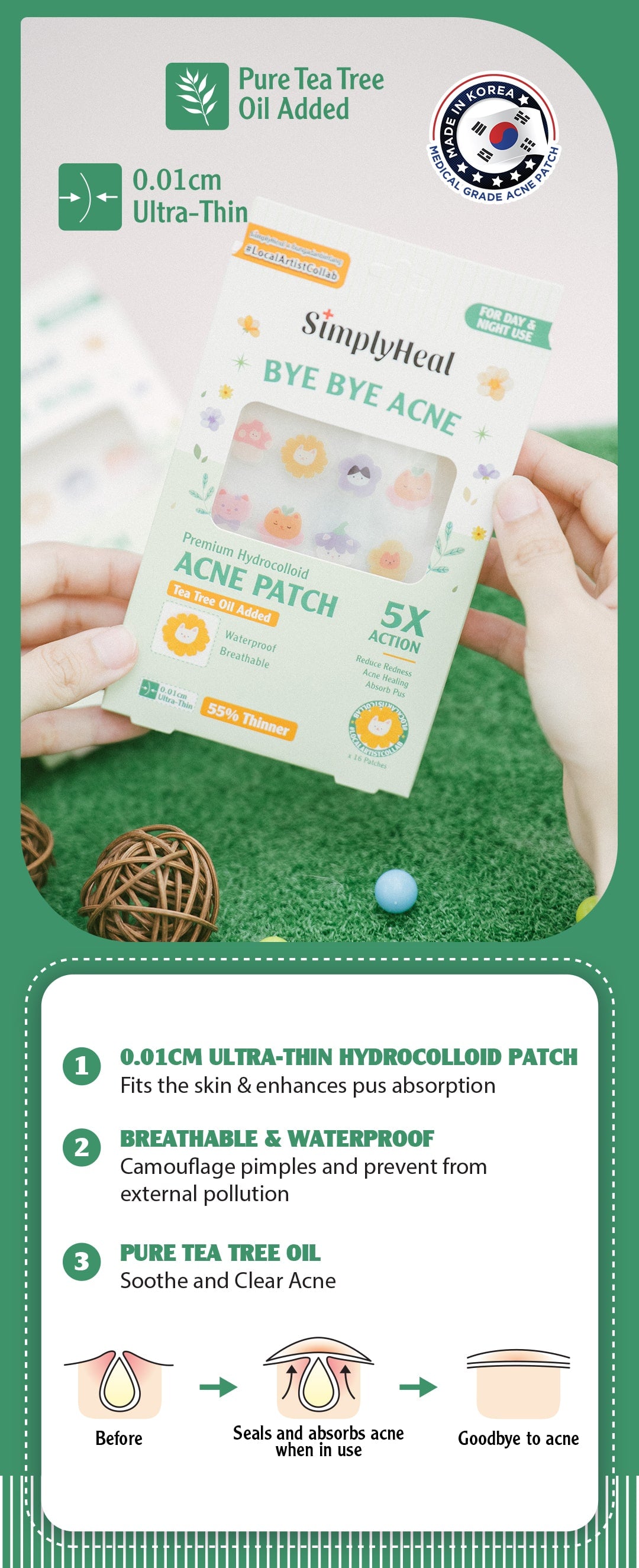 SimplyHeal Kitty Garden Day & Night Premium Hydrocolloid Acne Patch 16s
