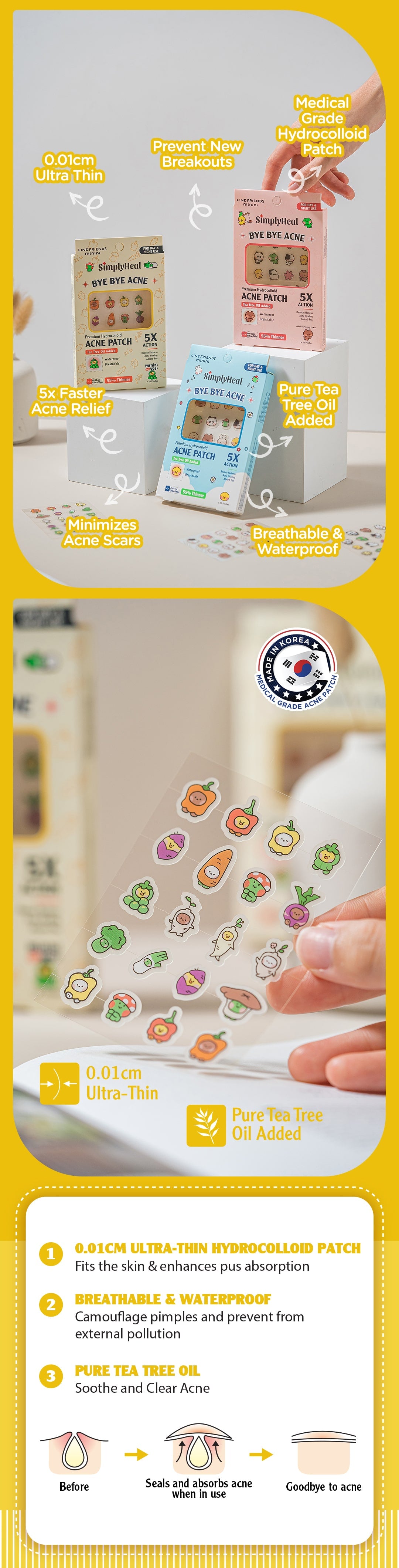 SimplyHeal LINE FRIENDS minini Daily Vegi Day & Night Premium Hydrocolloid Acne Patch 20s