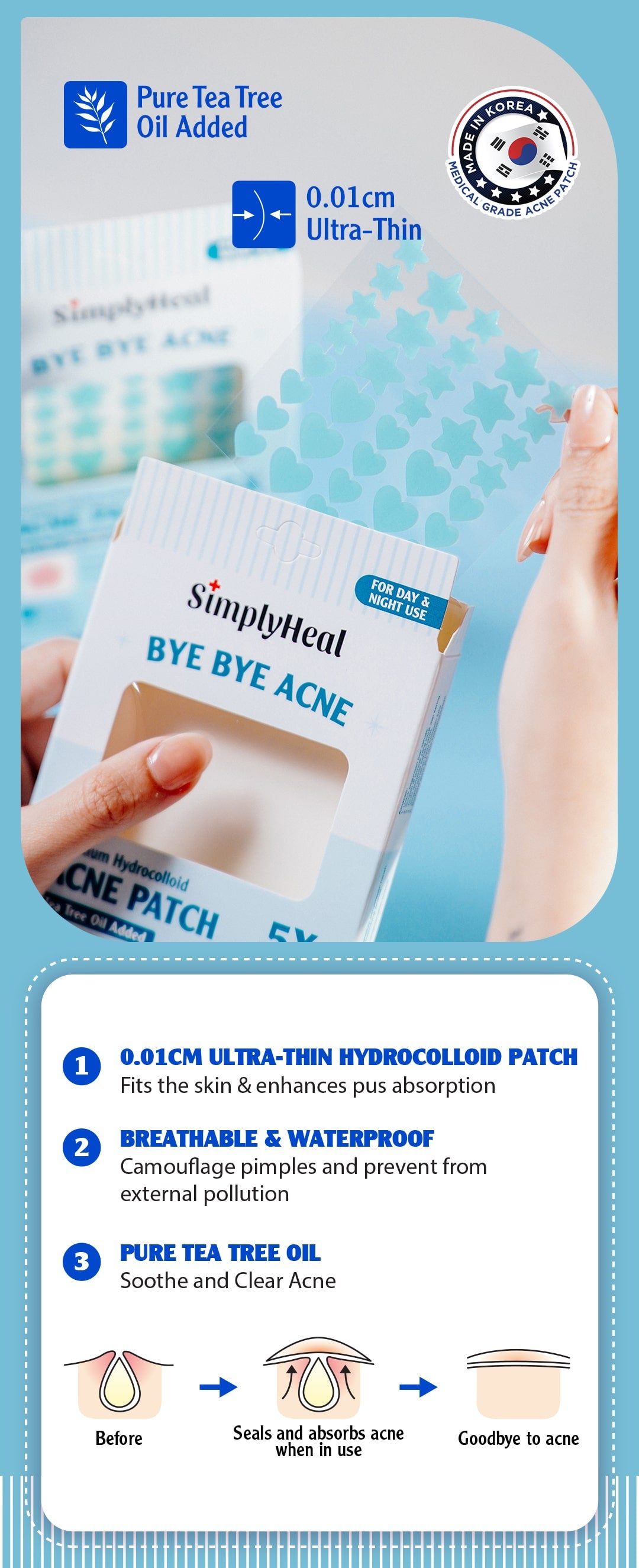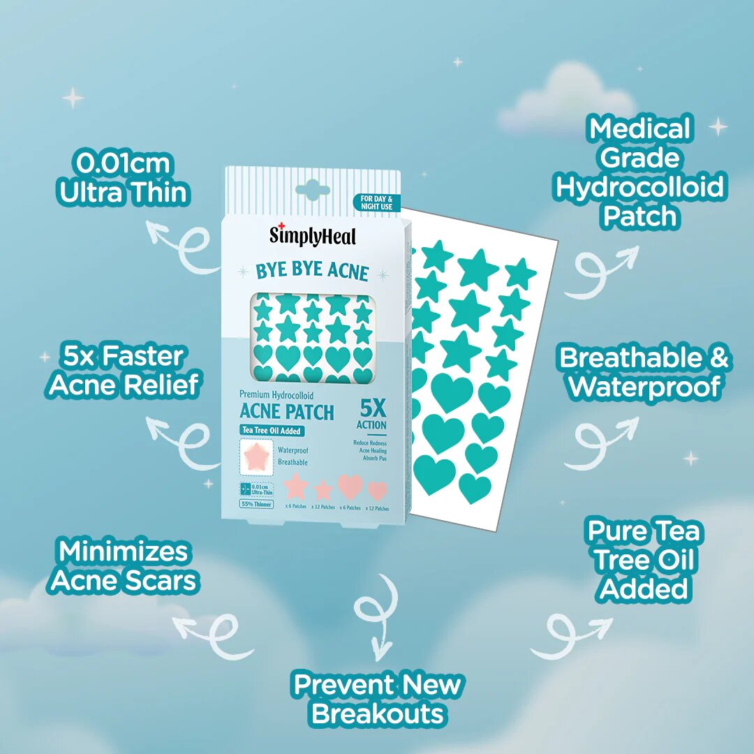 SimplyHeal Lovely Stars Day & Night Premium Hydrocolloid Acne Patch 36s (Blue)