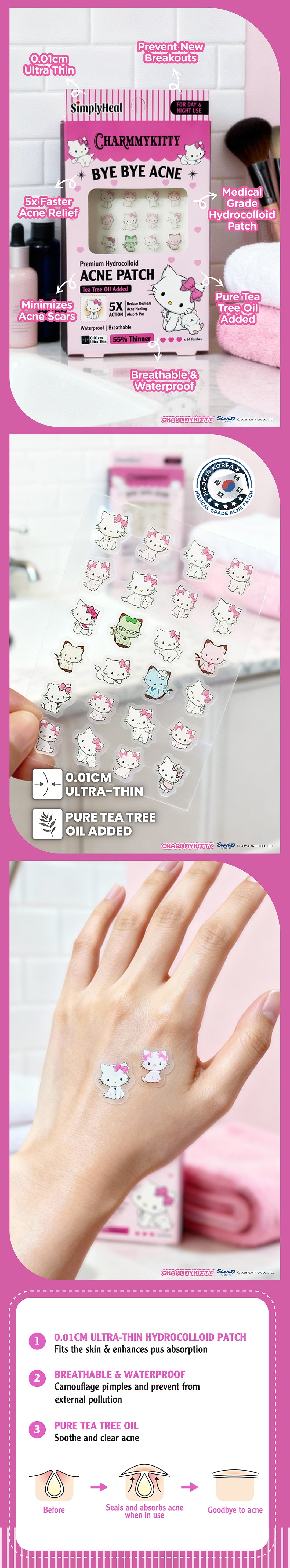 Simplyheal Charmmy Kitty & Friends Day & Night Premium Hydrocolloid Acne Patch 24s
