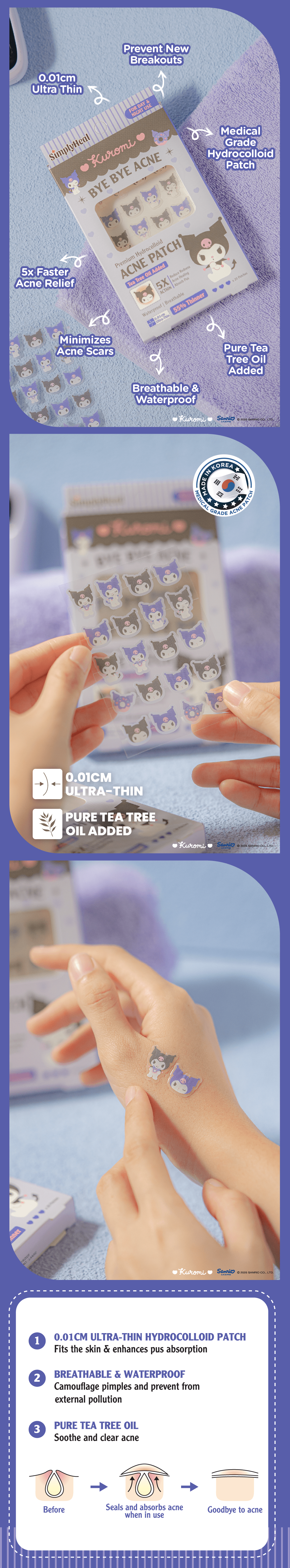 SimplyHeal Kuromi Day & Night Premium Hydrocolloid Acne Patch 20s