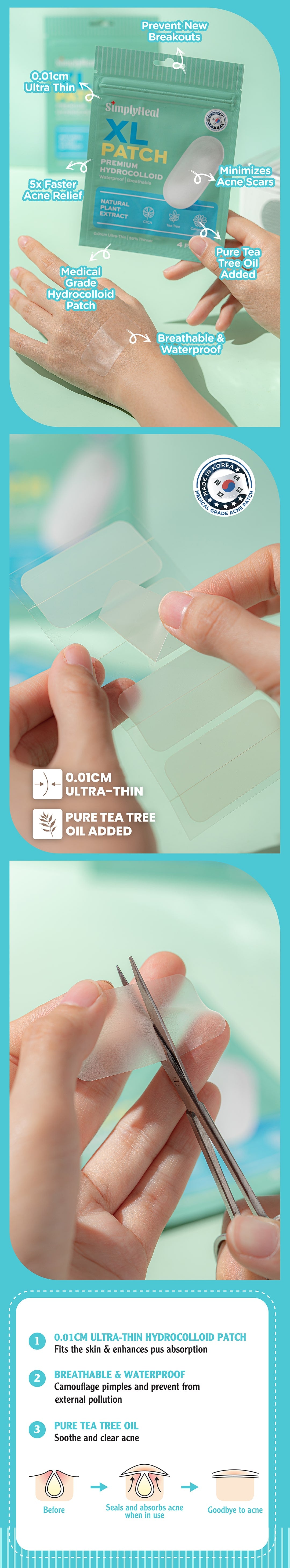 Simplyheal XL Day & Night Premium Hydrocolloid Acne Patch With Tea Tree Oil 4 Patches